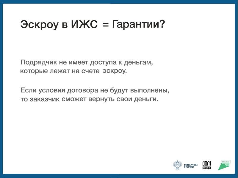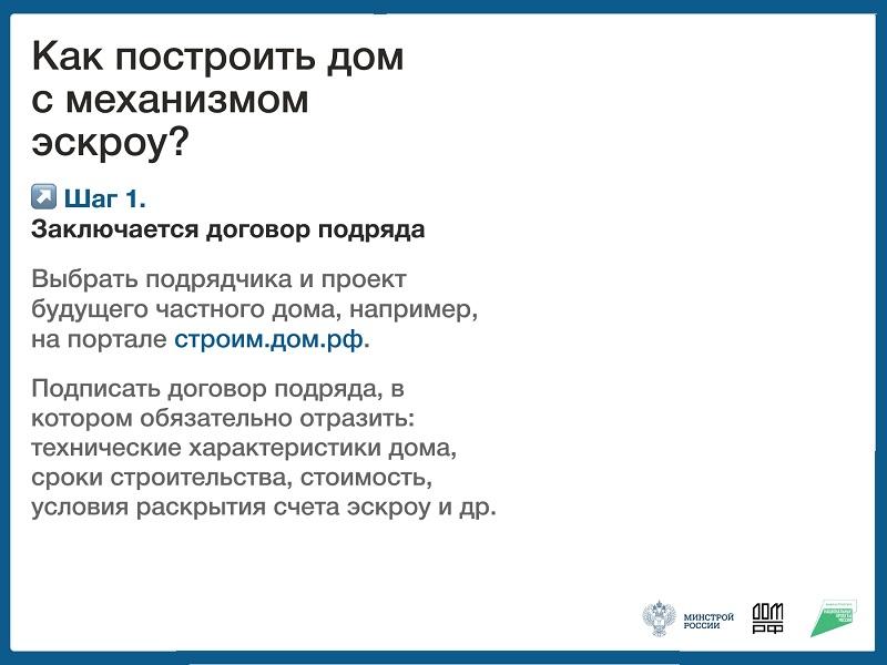 Минстрой России информирует граждан и подрядные организации о возможностях строительства индивидуальных жилых домов по договорам строительного подряда с использованием счетов эскроу.