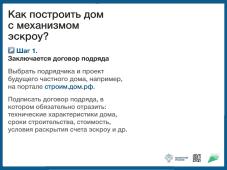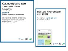 Для ознакомления с особенностями реализации норм Федерального закона от 22 июля 2024 г. № 186-ФЗ «О строительстве жилых домов по договорам строительного подряда с использованием счетов эскроу» мероприятий. Минстроем России совместно с ПАО ДОМ.РФ в рамках мероприятий разработаны информационно-графические материалы (см. в приложении).